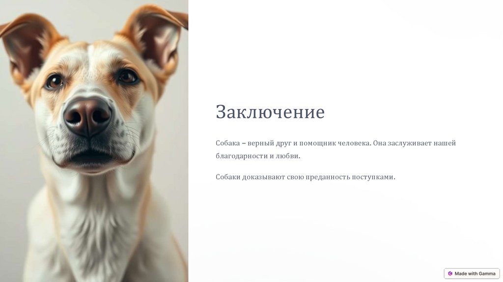 ЗаключениеСобака – верный друг и помощник человека. Она заслуживает нашей
