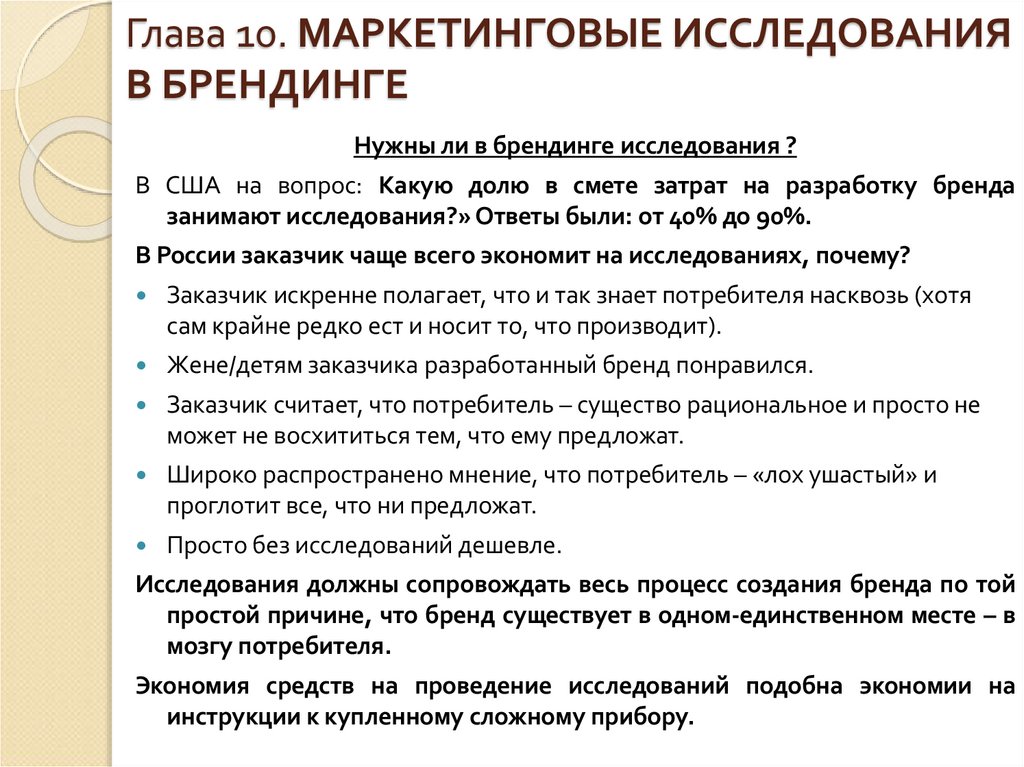 Глава 10. МАРКЕТИНГОВЫЕ ИССЛЕДОВАНИЯ В БРЕНДИНГЕ...................