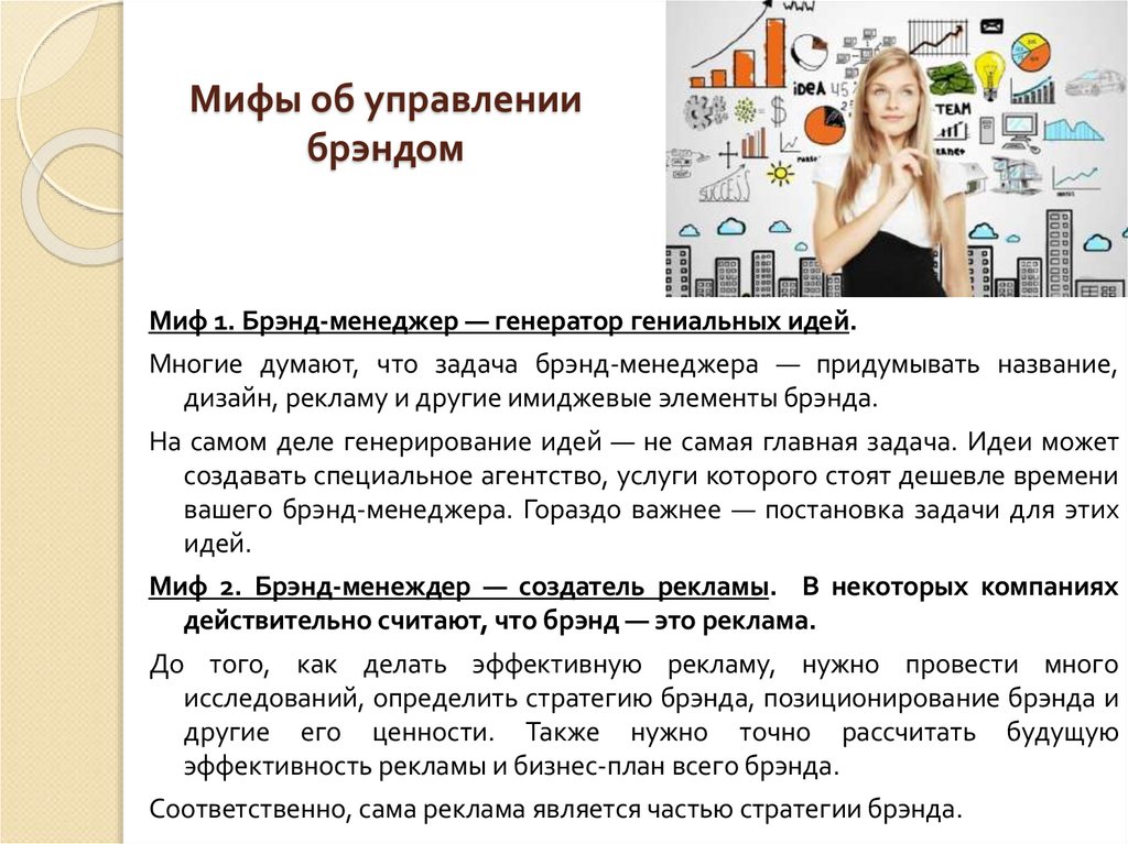 Миф 1. Брэнд-менеджер — генератор гениальных идей.Многие думают, что задача брэнд-менеджера — придумывать название,