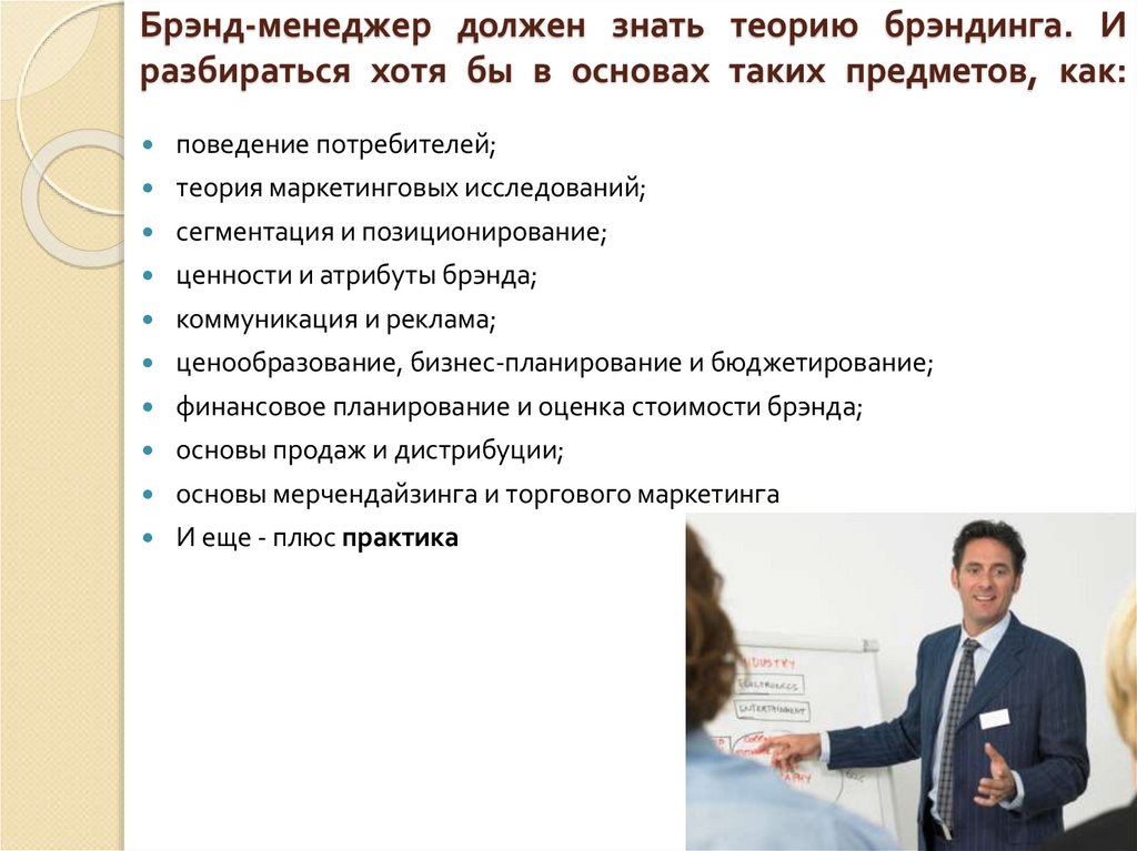 153. Брэнд-менеджер должен знать теорию брэндинга. И разбираться хотя бы в основах таких предметов, как: