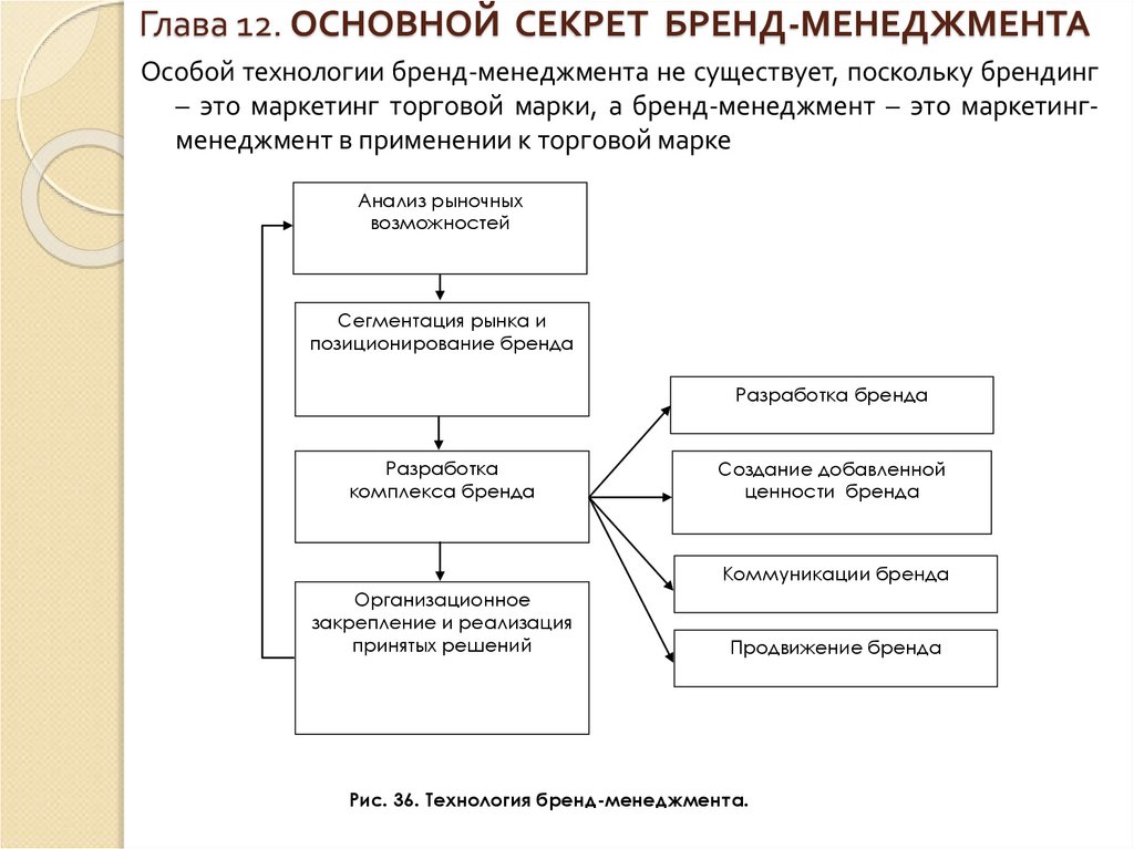 Особой технологии бренд-менеджмента не существует, поскольку брендинг– это маркетинг торговой марки, а бренд-менеджмент – это маркетингменеджмент в применении к торговой марке
