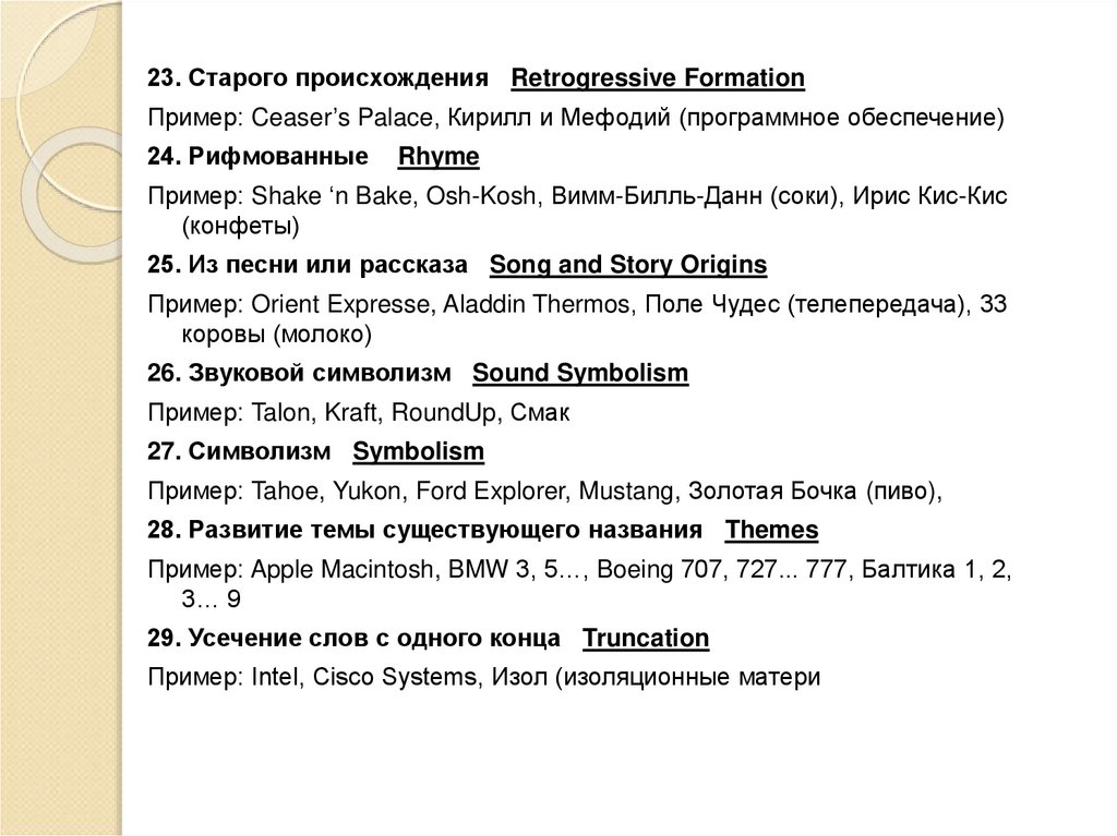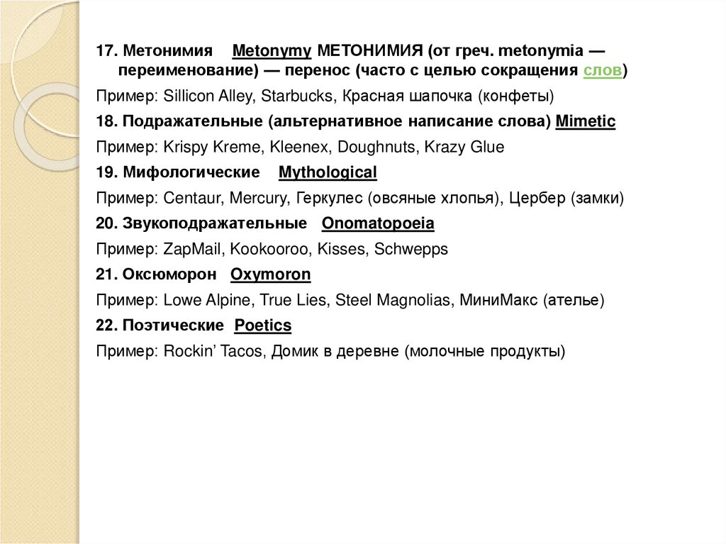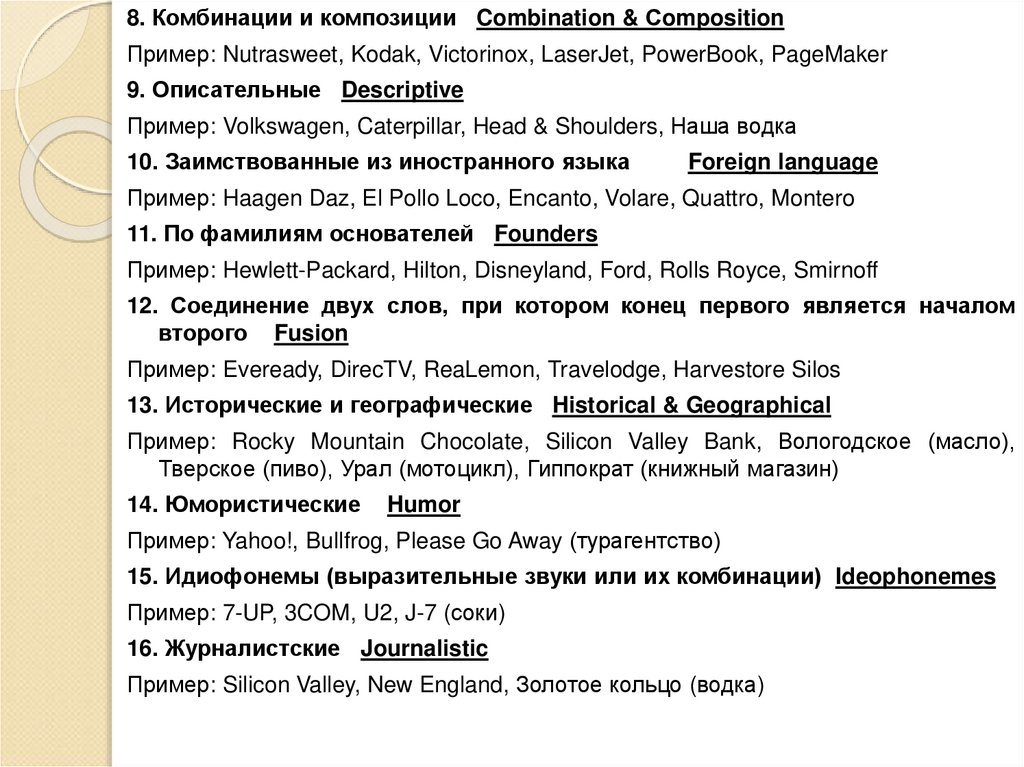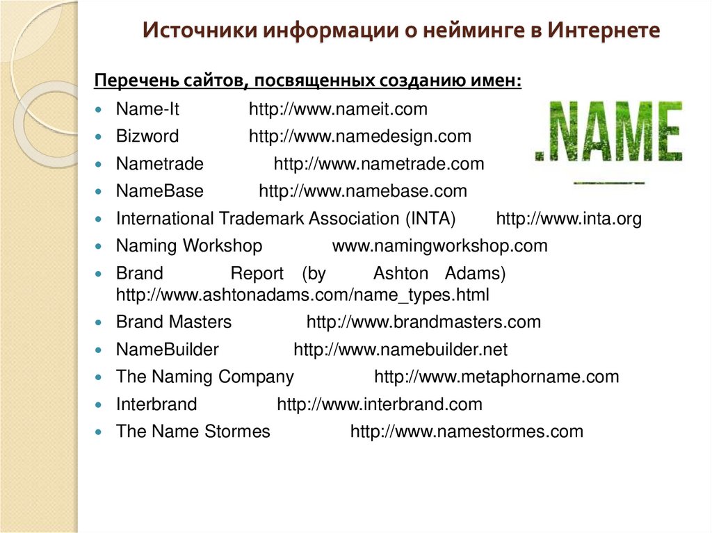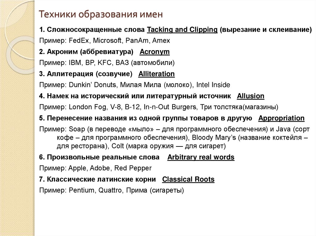 брэнду (создание названия, слоганов, сценариев кампаний…)