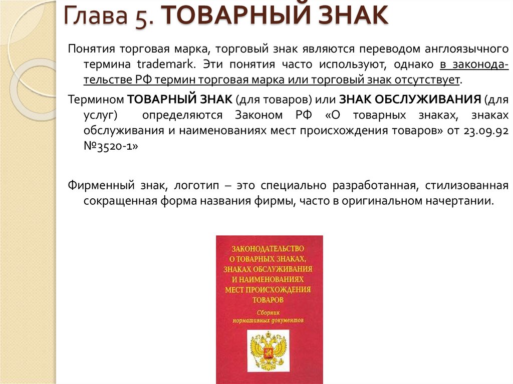Глава 5. ТОВАРНЫЙ ЗНАК............................................................................