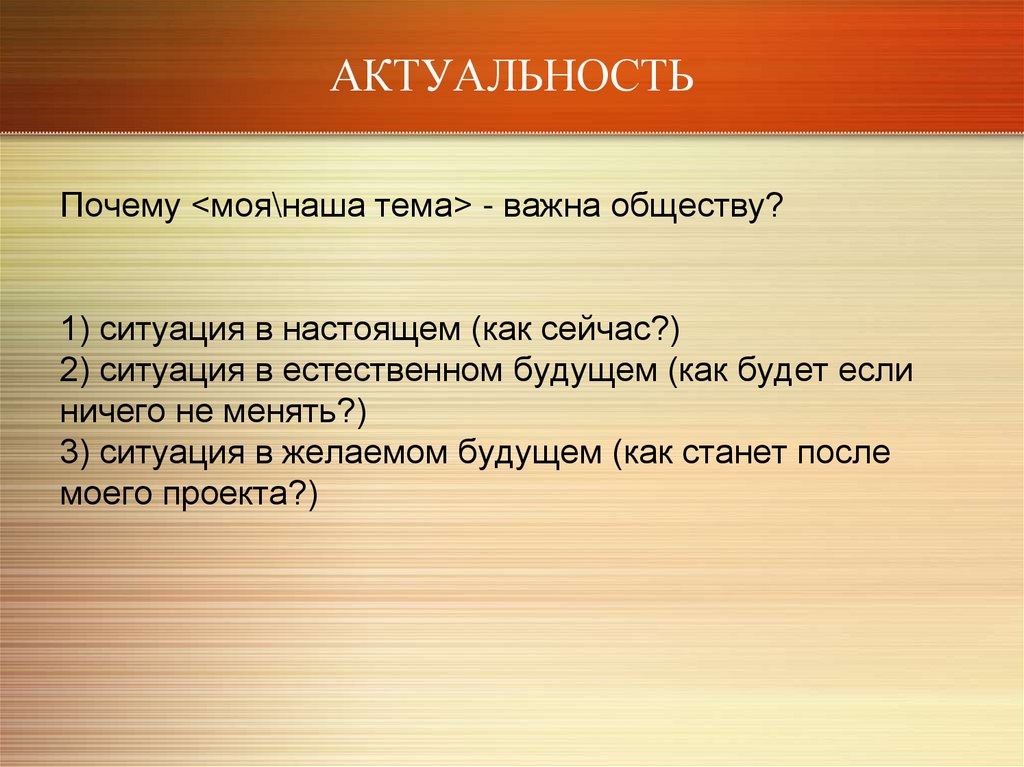 АКТУАЛЬНОСТЬПочему <моя\наша тема> - важна обществу?