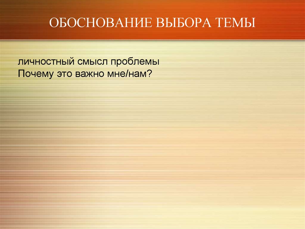 ОБОСНОВАНИЕ ВЫБОРА ТЕМЫличностный смысл проблемы