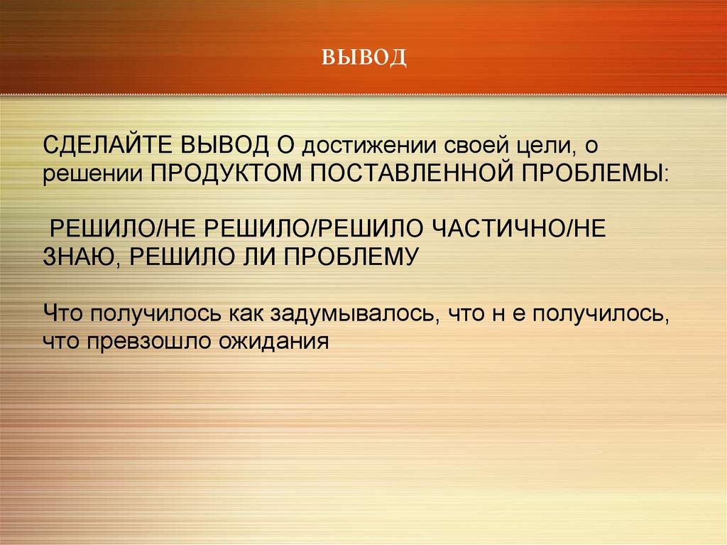 выводСДЕЛАЙТЕ ВЫВОД О достижении своей цели, о