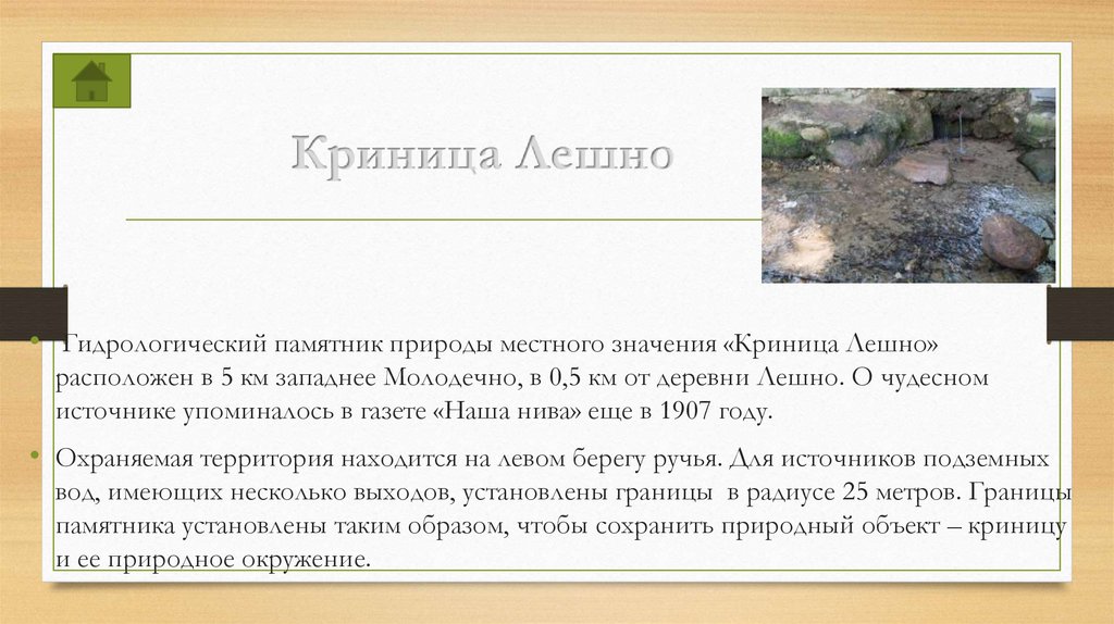 Криница Лешно• Гидрологический памятник природы местного значения «Криница Лешно»
