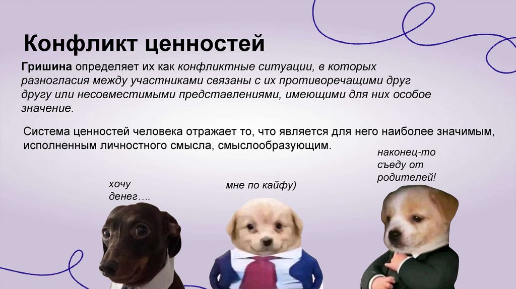 Конфликт ценностейГришина определяет их как конфликтные ситуации, в которых