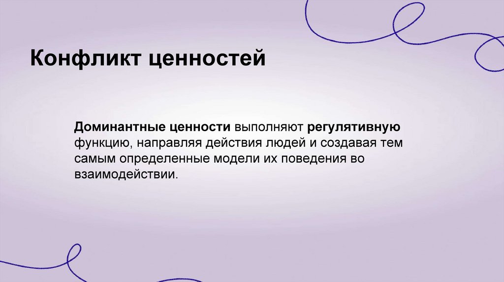 Конфликт ценностейДоминантные ценности выполняют регулятивную