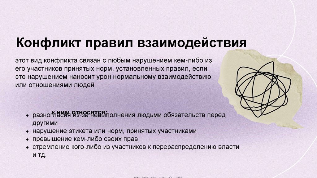 Конфликт правил взаимодействияэтот вид конфликта связан с любым нарушением кем-либо из