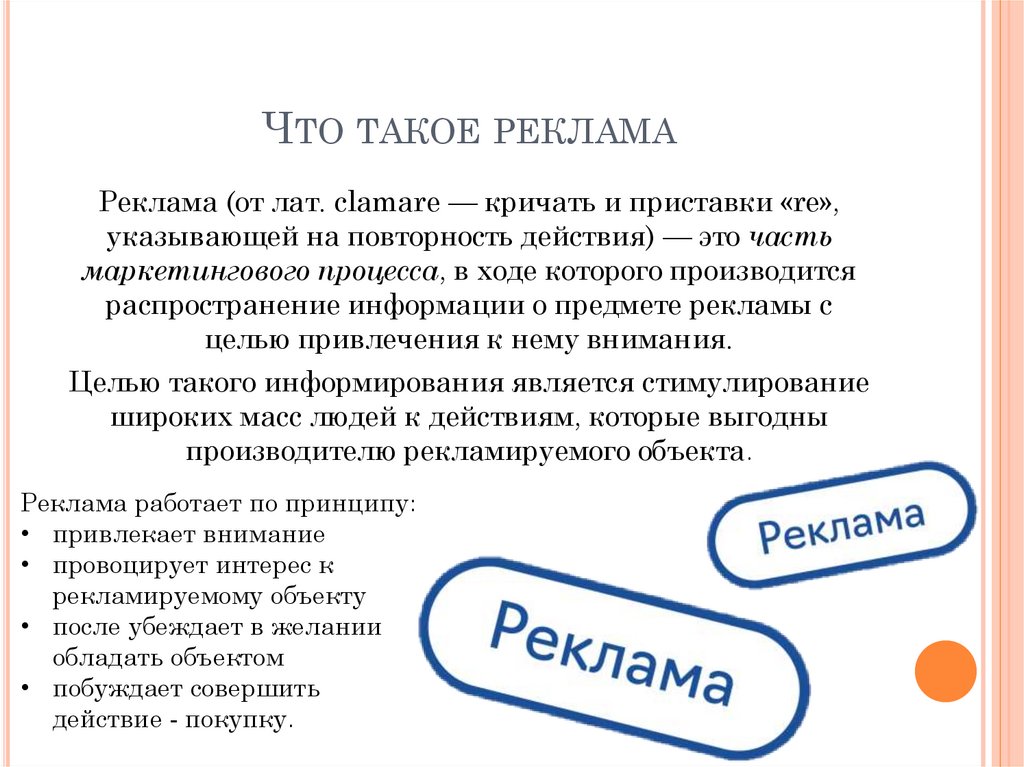 ЧТО ТАКОЕ РЕКЛАМАРеклама (от лат. clamare — кричать и приставки «re»,