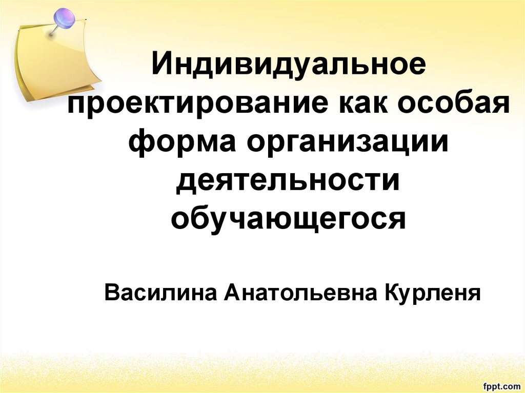1. Индивидуальное проектирование как особая форма организации деятельности обучающегося