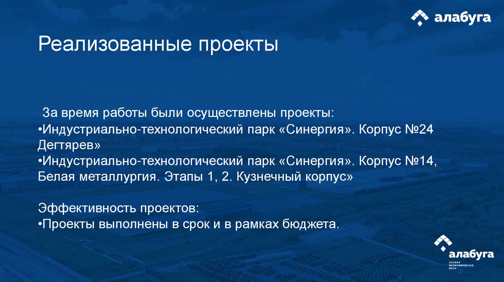 •Проекты выполнены в срок и в рамках бюджета.