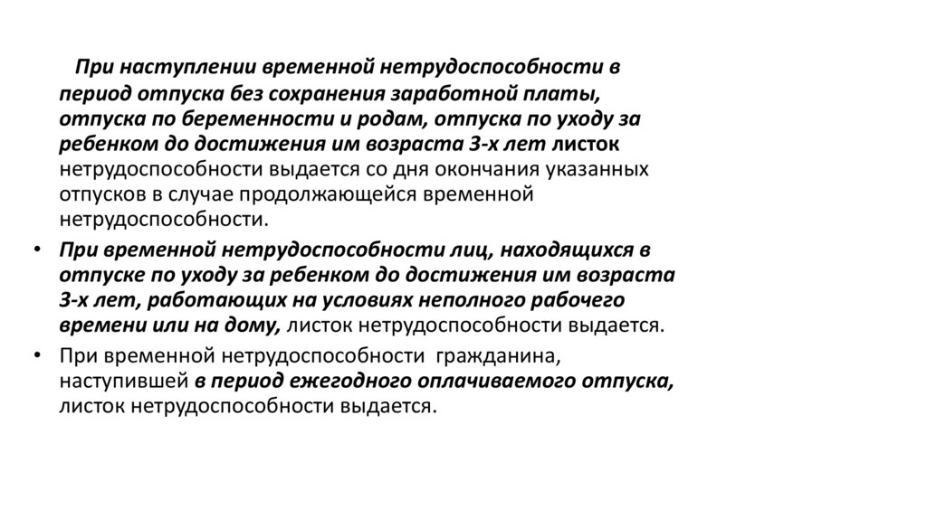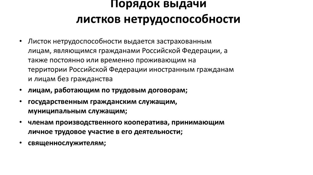 • Листок нетрудоспособности выдается застрахованным