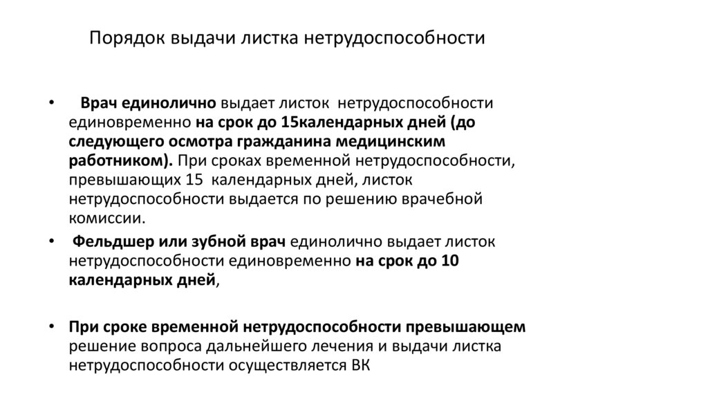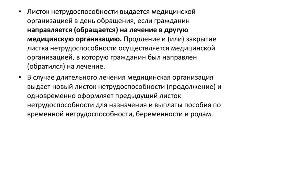 • Листок нетрудоспособности выдается медицинскойорганизацией в день обращения, если гражданин