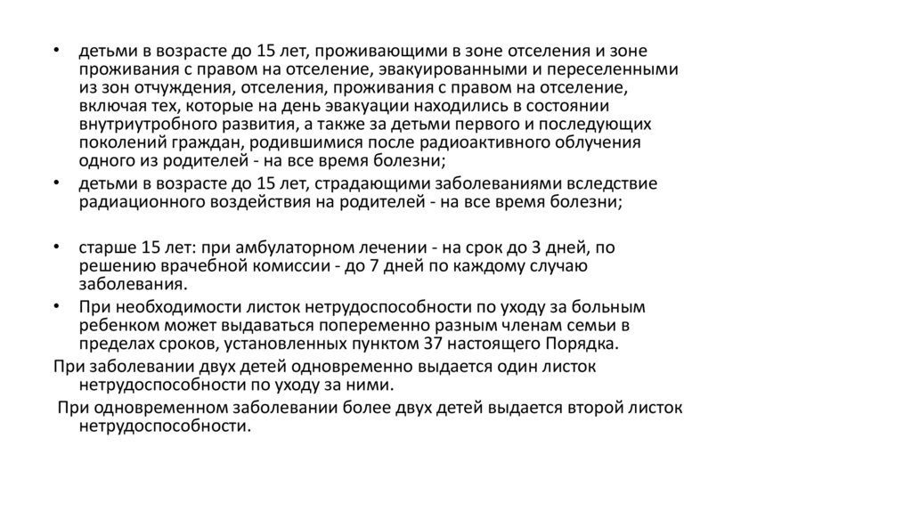 • Женщинам, проживающим (работающим) в населенных пунктах,подвергшихся радиоактивному загрязнению листок