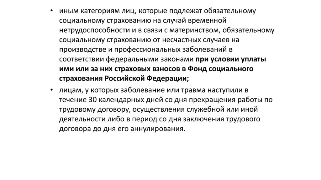 • иным категориям лиц, которые подлежат обязательномусоциальному страхованию на случай временной