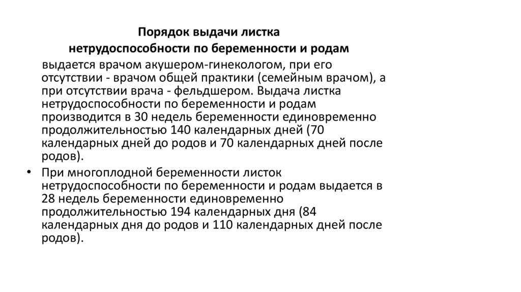беременности и родам листок нетрудоспособности выдается
