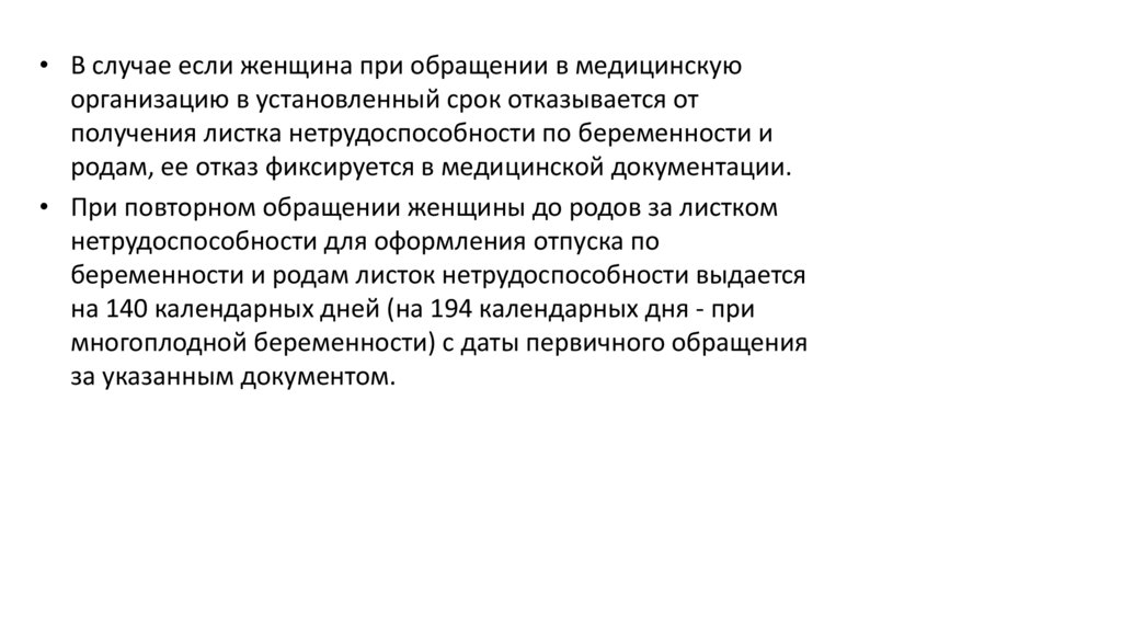 • В случае если женщина при обращении в медицинскуюорганизацию в установленный срок отказывается от