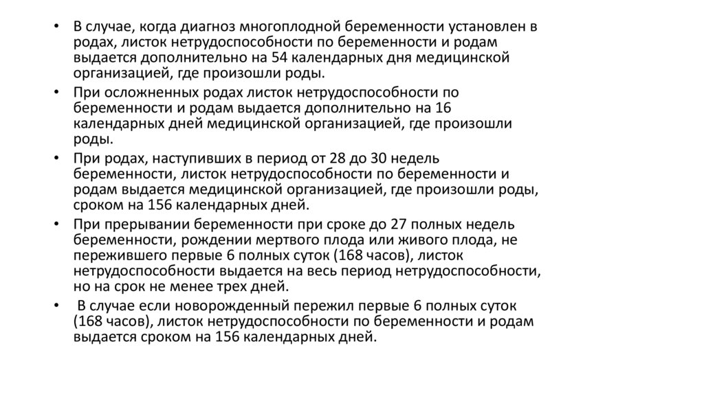 • В случае, когда диагноз многоплодной беременности установлен вродах, листок нетрудоспособности по беременности и родам