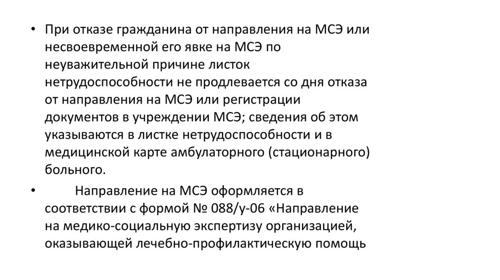 • При отказе гражданина от направления на МСЭ илинесвоевременной его явке на МСЭ по