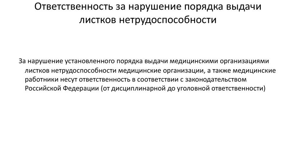 Ответственность за нарушение порядка выдачилистков нетрудоспособности