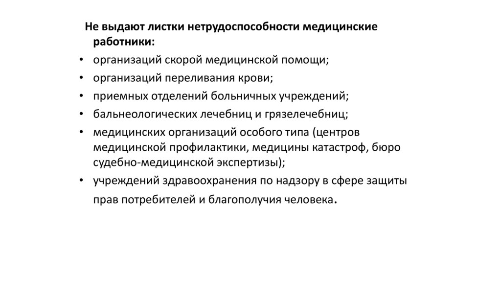 листков нетрудоспособности медицинские организации, а также медицинские