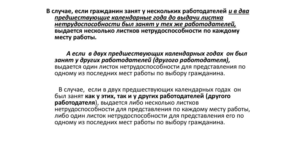 В случае, если гражданин занят у нескольких работодателей и в двапредшествующие календарные года до выдачи листка