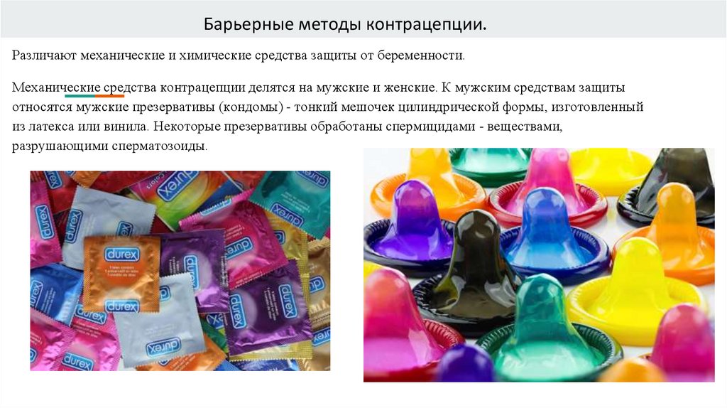 Барьерные методы контрацепции.Различают механические и химические средства защиты от беременности.