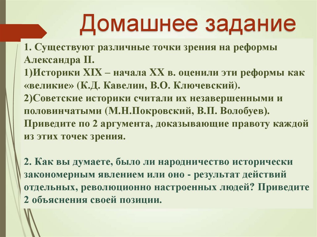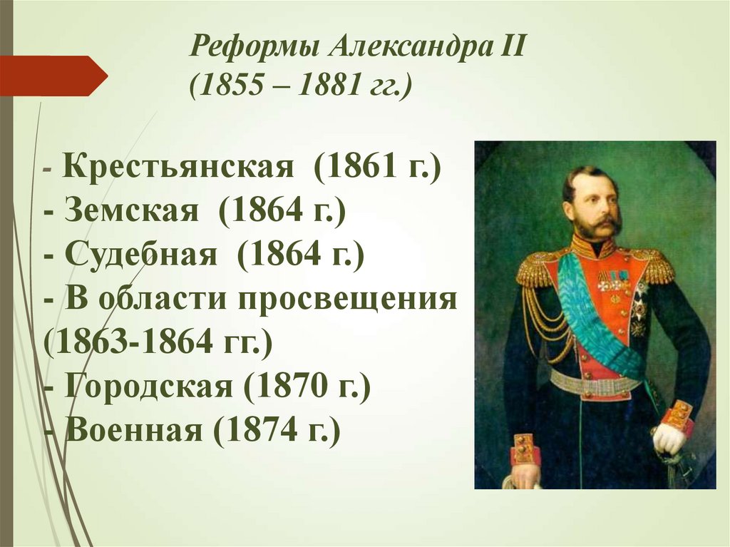 50. 1. Существуют различные точки зрения на реформы Александра II. 1)Историки XIX – начала XX в. оценили эти реформы как «великие»