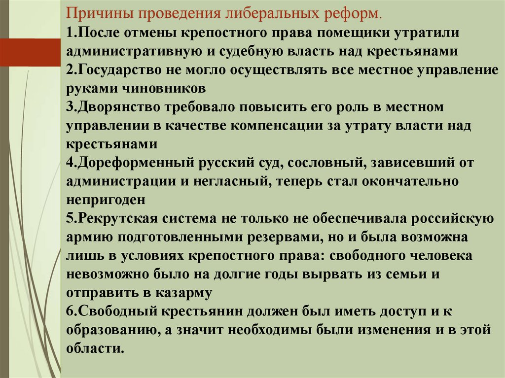 .ПРИЧИНЫ ОТМЕНЫ КРЕПОСТНОГО ПРАВА В РОССИИ