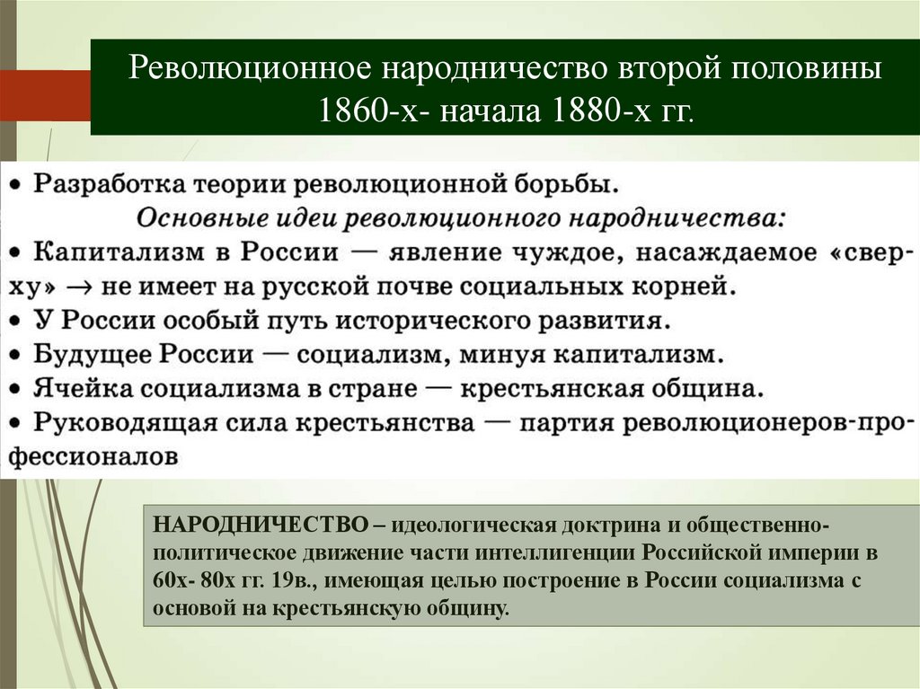 НАРОДНИЧЕСТВО – идеологическая доктрина и общественнополитическое движение части интеллигенции Российской империи в