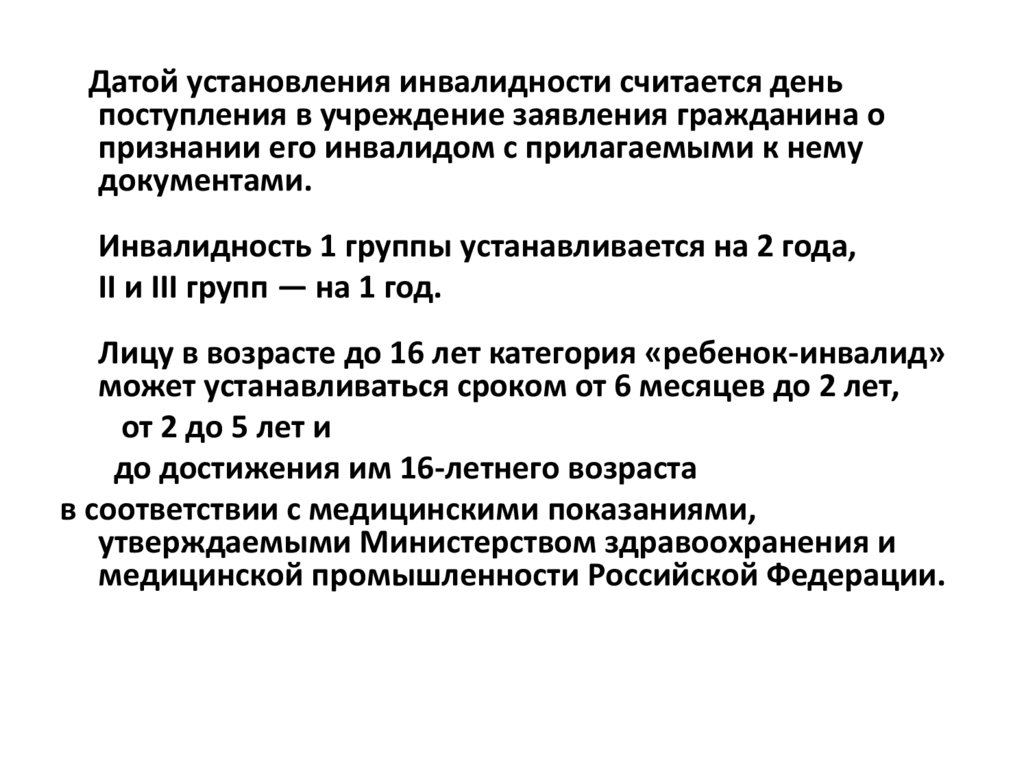 Инвалидность устанавливается до первого числа месяца, следующего за тем