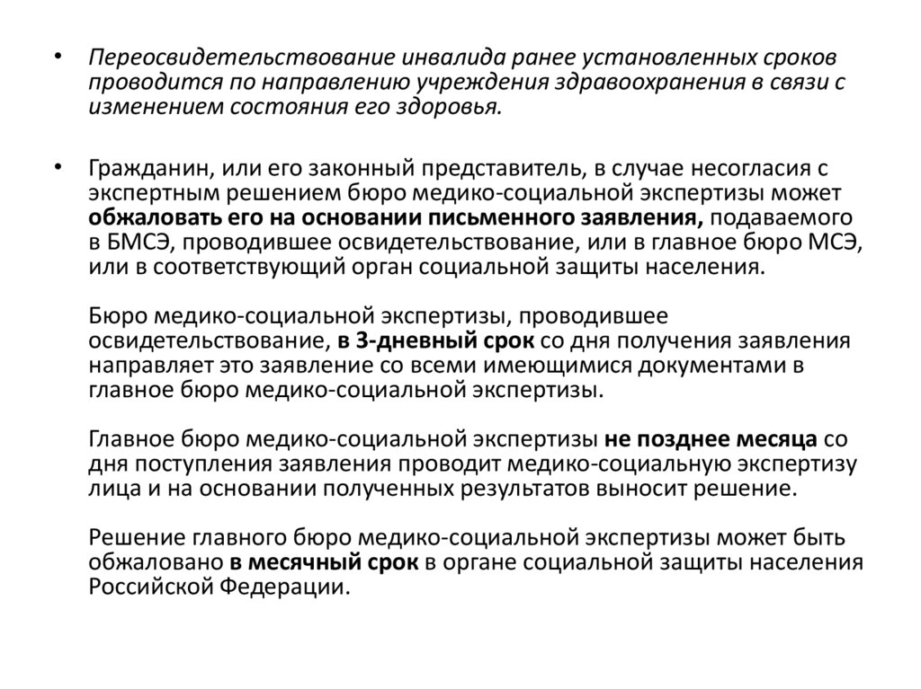• На очередное освидетельствование в бюро МСЭ, в обязательном