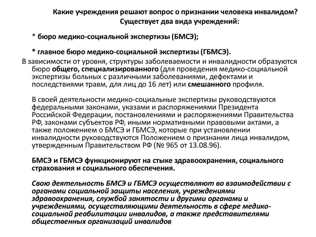 также положением о БМСЭ и ГБМСЭ, которые при установлении