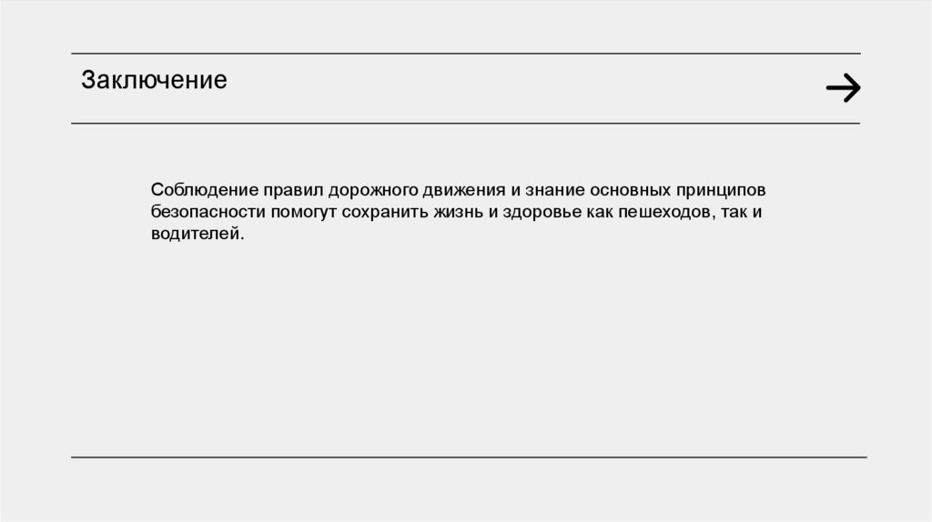 ЗаключениеСоблюдение правил дорожного движения и знание основных принципов