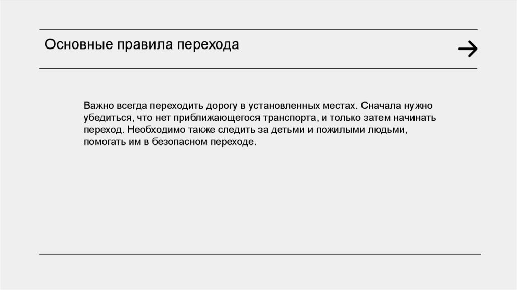 Основные правила переходаВажно всегда переходить дорогу в установленных местах. Сначала нужно