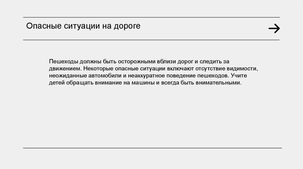 Опасные ситуации на дорогеПешеходы должны быть осторожными вблизи дорог и следить за