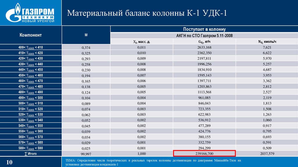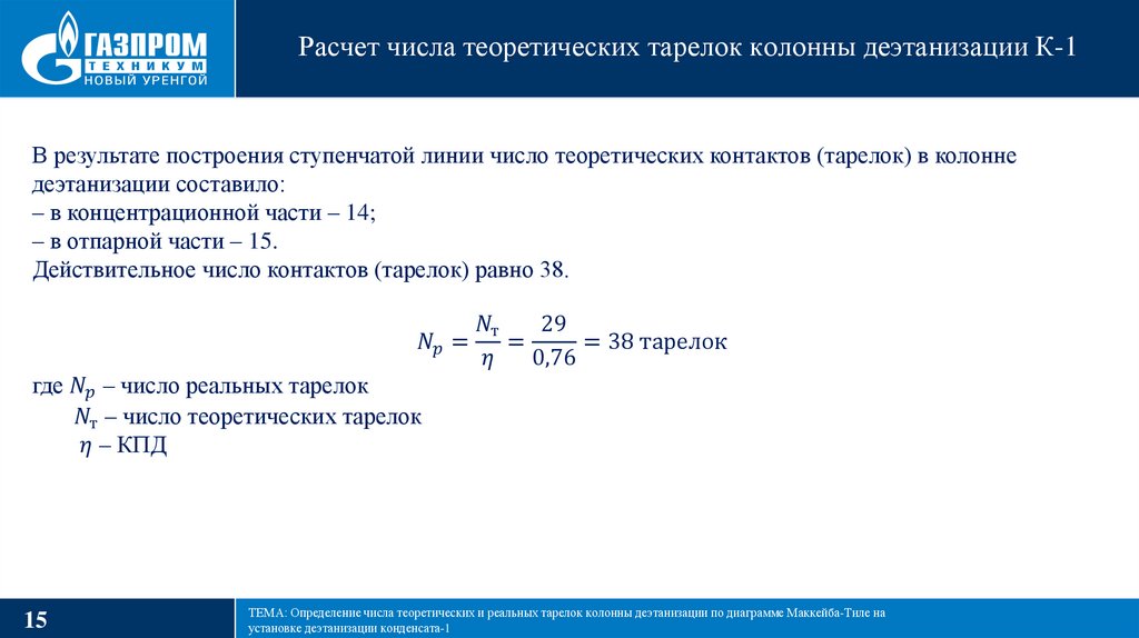ТЕМА: Определение числа теоретических и реальных тарелок колонны деэтанизации по диаграмме Маккейба-Тиле на