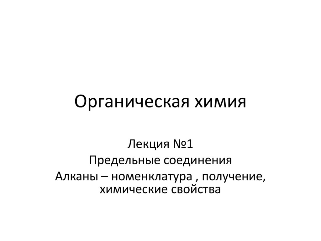 Органическая химия Лекция №1 Предельные соединения Алканы – номенклатура , получение, химические свойства