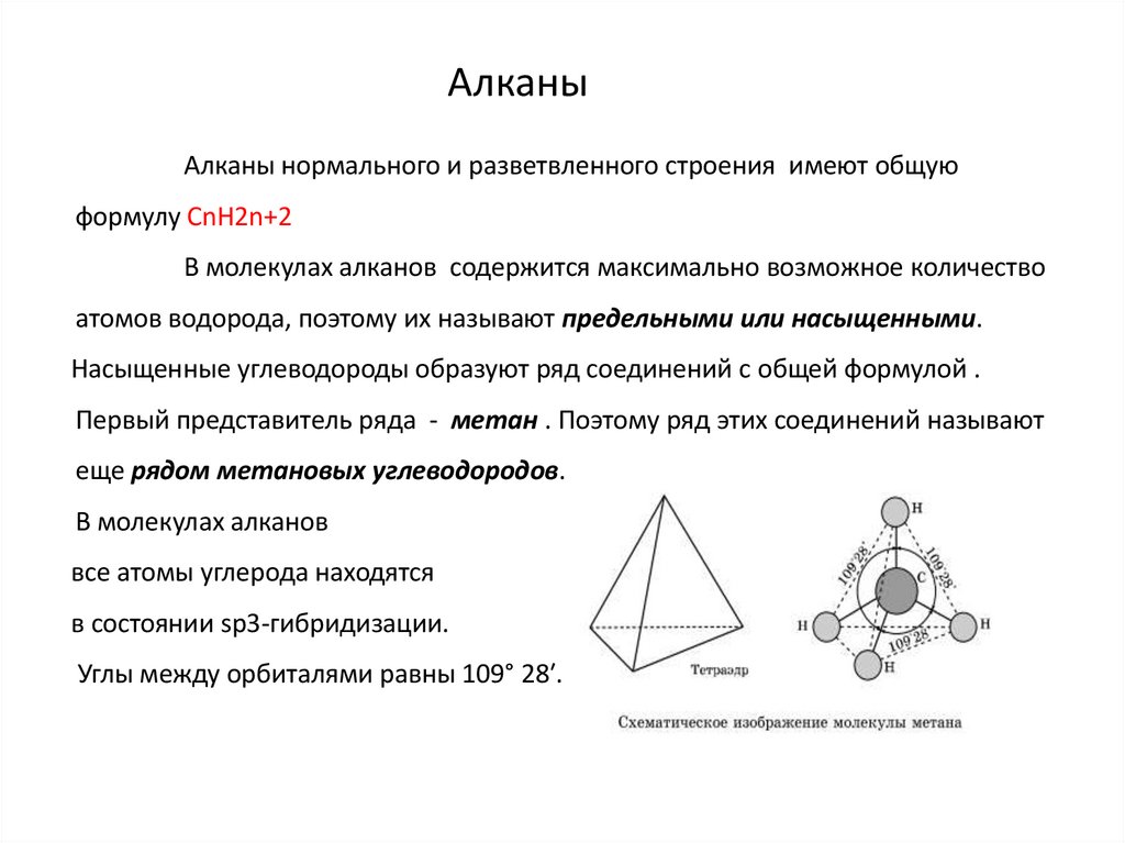 АлканыАлканы нормального и разветвленного строения имеют общую