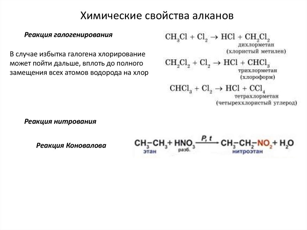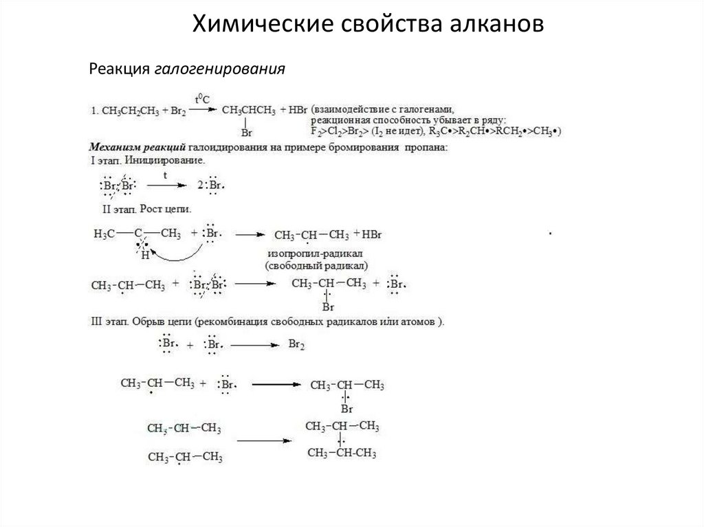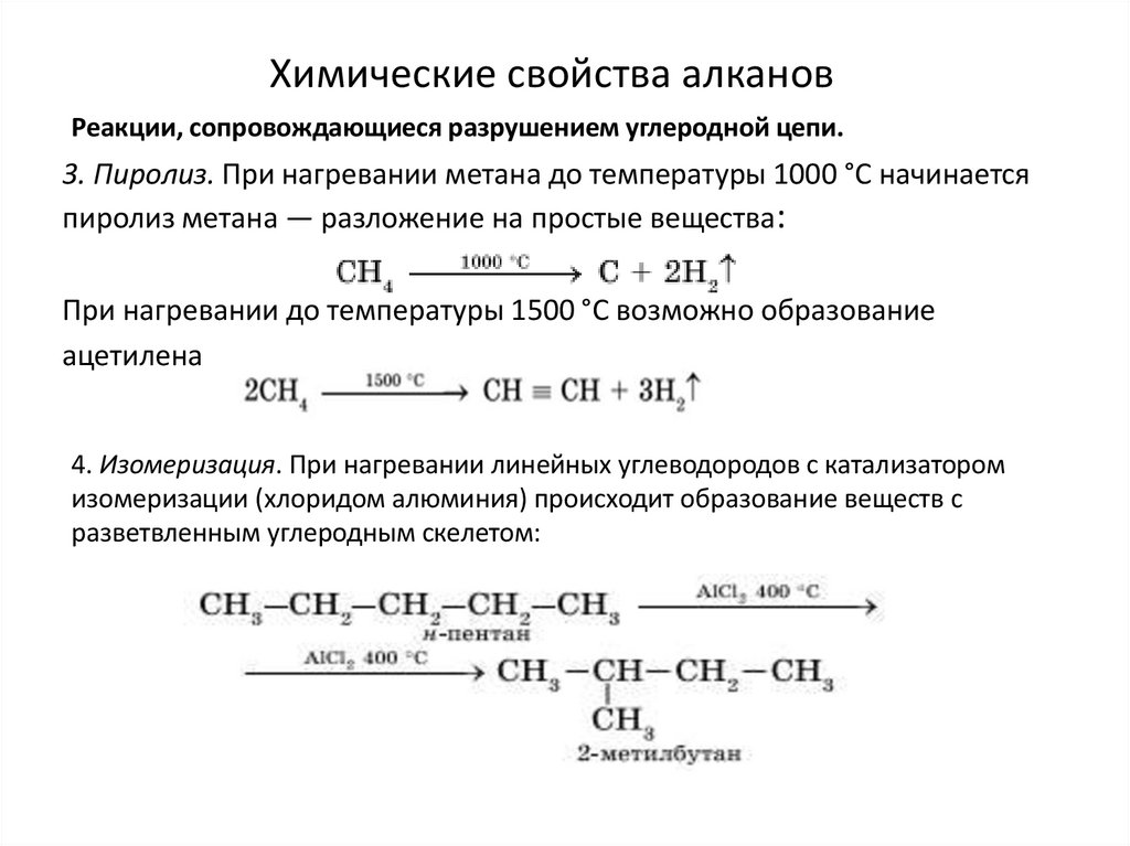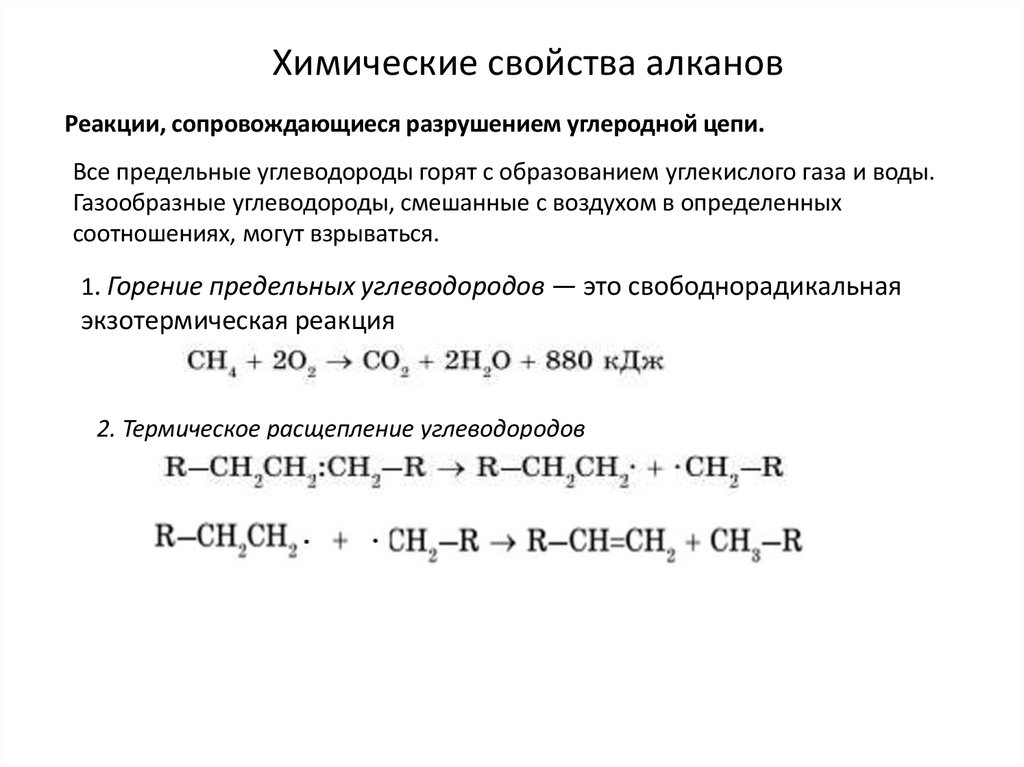 Химические свойства алкановРеакции, сопровождающиеся разрушением углеродной цепи.