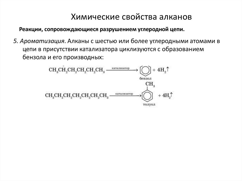 5. Ароматизация. Алканы с шестью или более углеродными атомами в