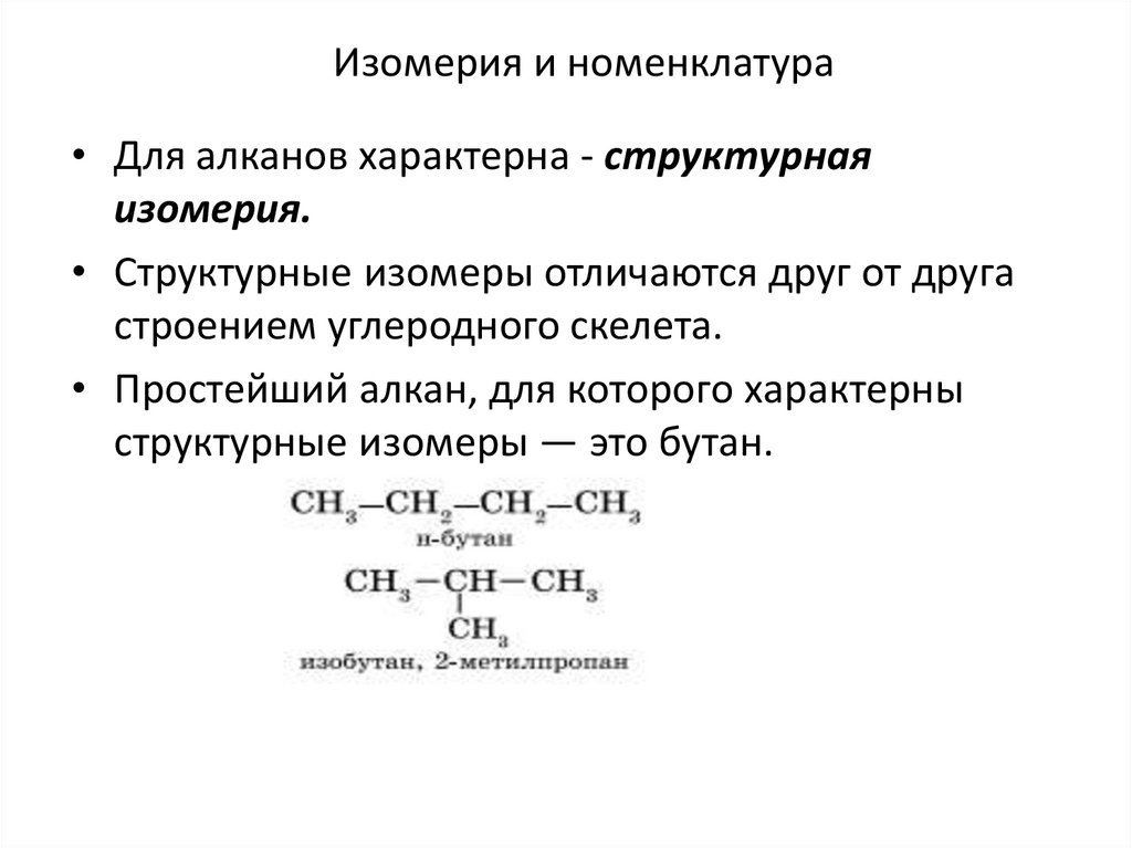 Изомерия и номенклатура• Для алканов характерна - структурная