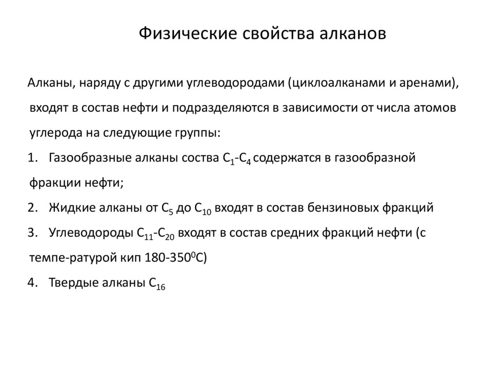 Физические свойства алкановАлканы, наряду с другими углеводородами (циклоалканами и аренами),
