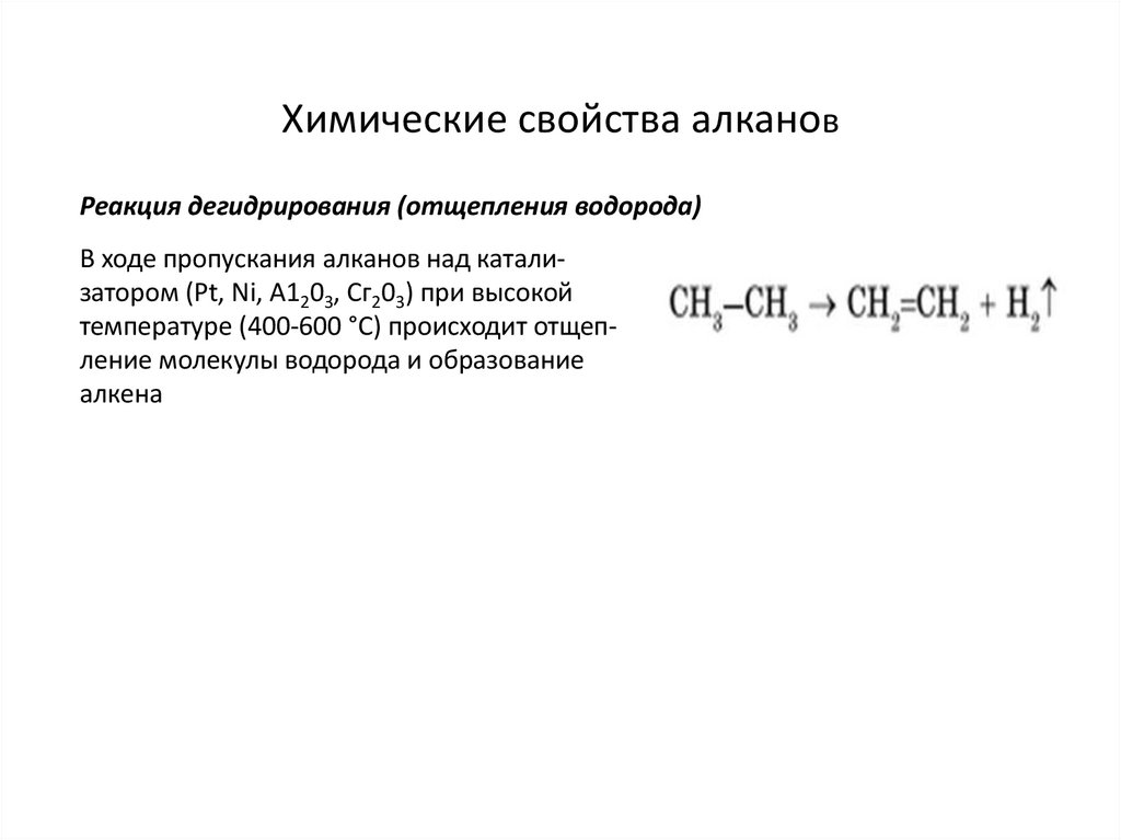 Химические свойства алкановРеакция дегидрирования (отщепления водорода)