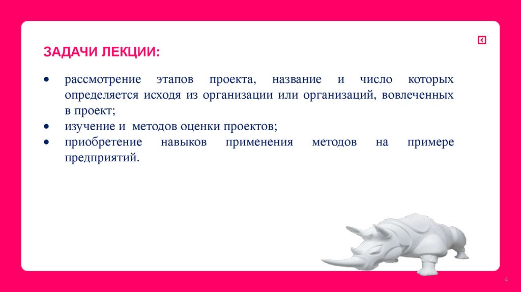 ЗАДАЧИ ЛЕКЦИИ:рассмотрение этапов проекта, название и число которых