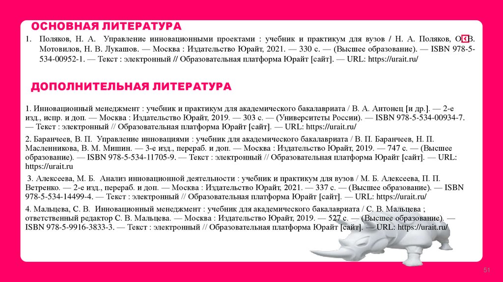 ОСНОВНАЯ ЛИТЕРАТУРА1. Поляков, Н. А. Управление инновационными проектами : учебник и практикум для вузов / Н. А. Поляков, О. В.
