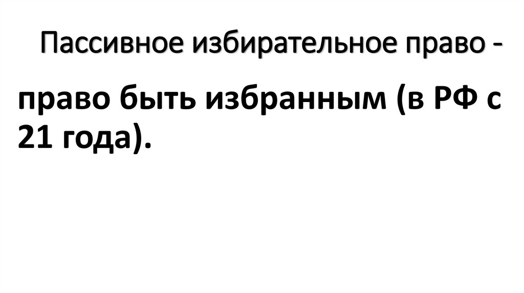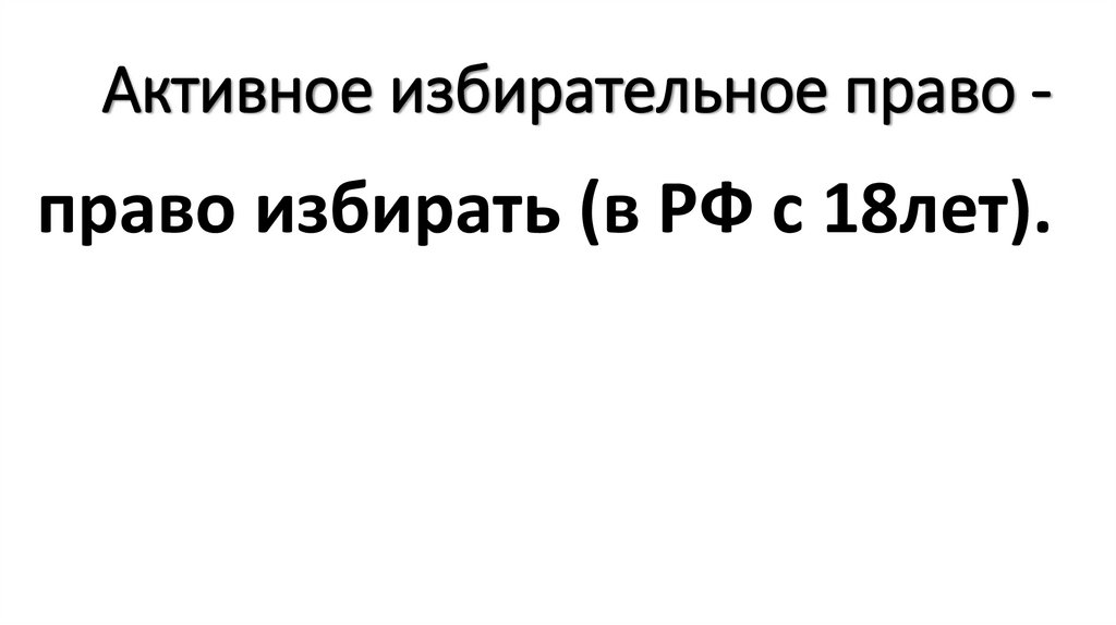 Активное избирательное право -право избирать (в РФ с 18лет).