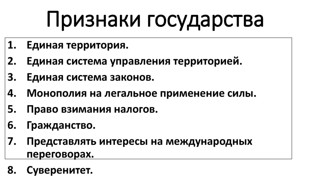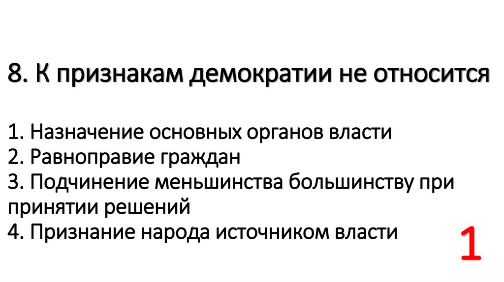 8. К признакам демократии не относится1. Назначение основных органов власти